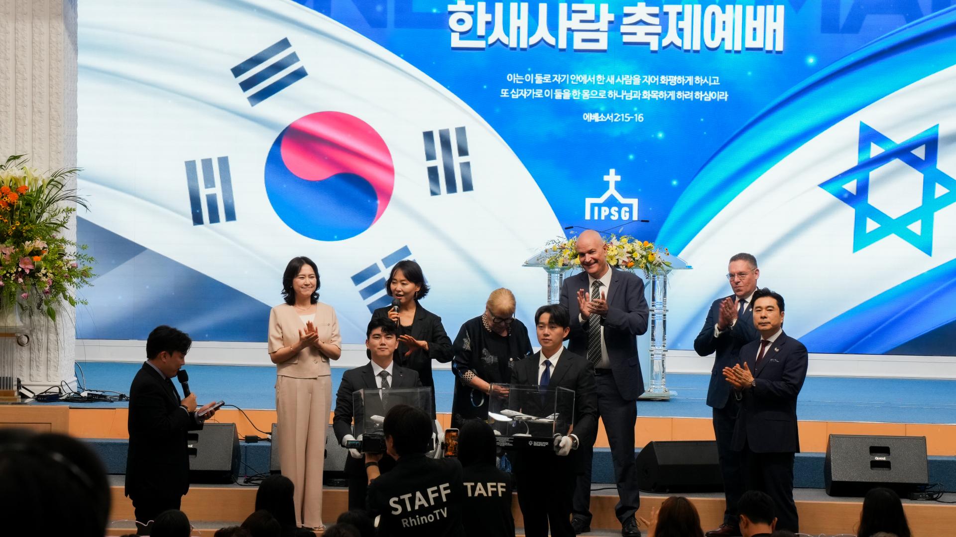 라파엘 하르파즈 주한 이스라엘 대사 등이 지난 7일 경기도 김포 서울김포영광교회에서 '한새사람 연합예배'를 드리는 모습. 서울김포영광교회 제공